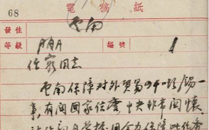 鄧小平親擬文電致云南省委書記、省軍政委員會副主席宋任窮" 云南保障對外貿(mào)易四干噸錫”